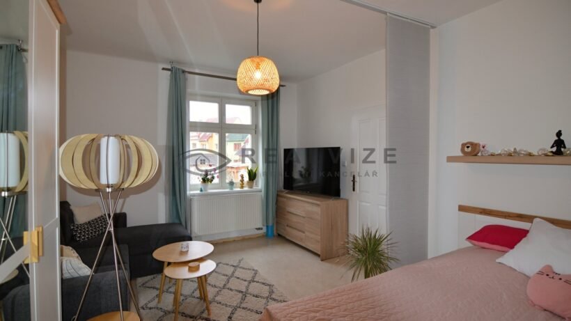 Nabízíme k dlouhodobému pronájmu modernizovaný byt o dispozici 1+1 s výměrou cca 57 m2 (51 m2 plocha bytu + balkon a sklep), který se nachází ve 3. nadzemním podlaží zděného domu v blízkosti centra města na Mánesově ulici. V bytě je vybavená prostorná kuchyně s vestavěnými spotřebiči v lince -
