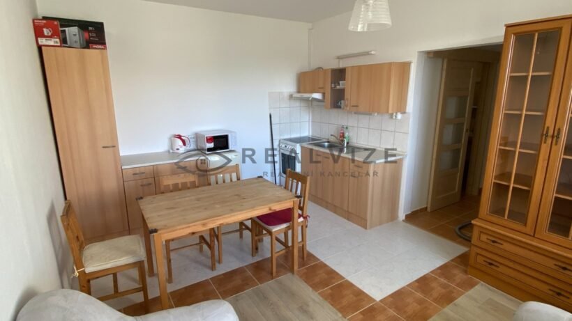 Nabízíme k dlouhodobému pronájmu modernizovaný byt 2+kk s lodžií v okrajové části Velešína, ul. Nad Cihelnou. Byt se nachází ve 4. patře (6) panelového domu s výtahem. Před časem prošel modernizací - úprava jádra, výměna kuchyňské linky a interiérových dveří. Nabízí se částečně zařízený (jídelní stůl se židlemi, skříně). Vhodný